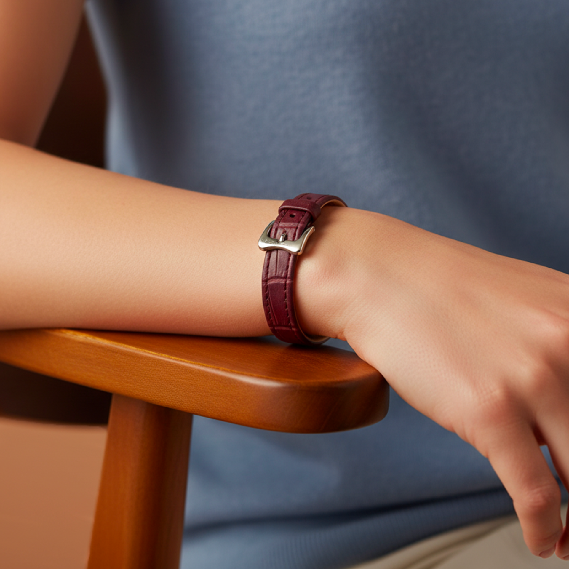 Leather meets metal in a dialogue between matter and motion. The Leather Collection reimagines Exaequo’s signature design with a modern touch: crocodile-pattern leather straps. An accessory like a second skin — to be worn every day.
